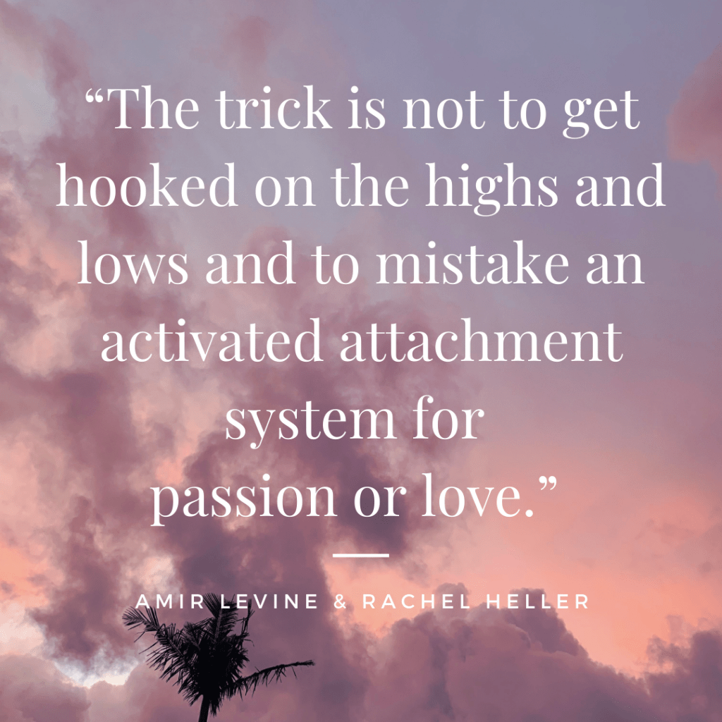 When we gain this insight, we can work with our partner, a professional and/or through self discovery ways to move towards a secure attachment style and healthy, sustainable relationships.